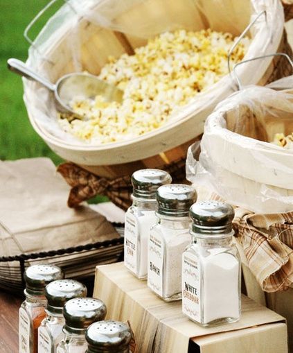 Too many guests to customize treats for but still want to make an impression? Create a make your own popcorn bar. Don’t just have flavored salts, throw in some sweets like Milk Duds, M&M’s or white chocolate chips. If you don’t have enough time to customize, fill a wagon with treats for guests to sort through. It can be moved around to all your guests and replenished easily. Great example from Your Home Based Mom blog.